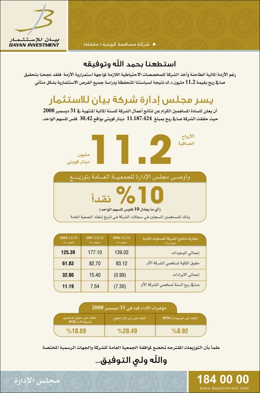 Adv.: Bayan Investment Announces Financial Results of Year 2008
