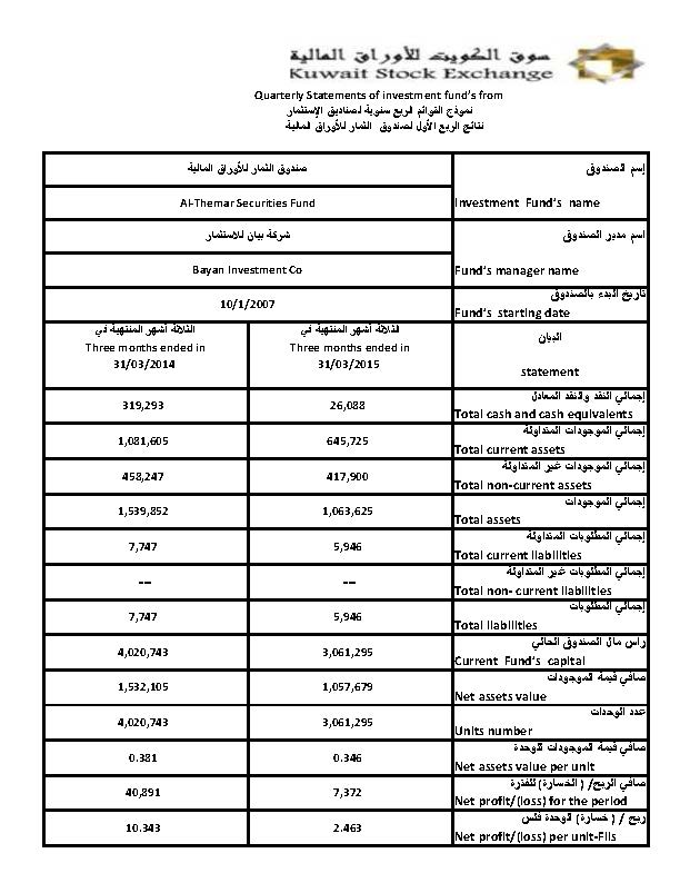 Disclosure: Al-Themar Fund 1ST Quarter Results